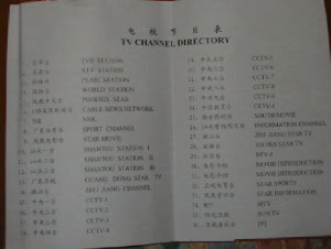 香港とはうって変わって、中国のテレビチャンネルは恐ろしいほど多かった。泊まったホテルが、3,4つ星ホテルだったからなのかもしれないが、だいたい30チャンネルは映っていた。詳しくは、汕頭のホテルの客室にあった「テレビチャンネル一覧(別ウィンドウが開きます)」がありますので、そちらをどうぞ・・・。China Central Television(央視國際)が9チャンネルもあり、そのほかにも各地の地方局が映ったりします。ちなみに7チャンネルは、NHKの国際放送です。